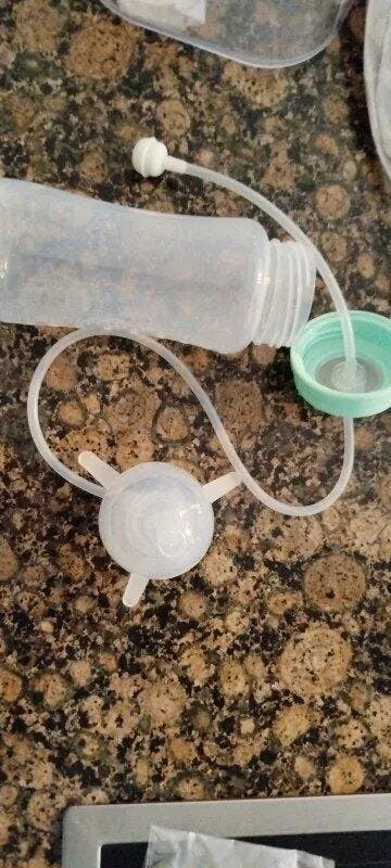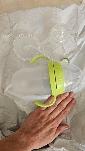 Este tetero se sostiene solo, mientras tu bebé aprende a alimentarse.